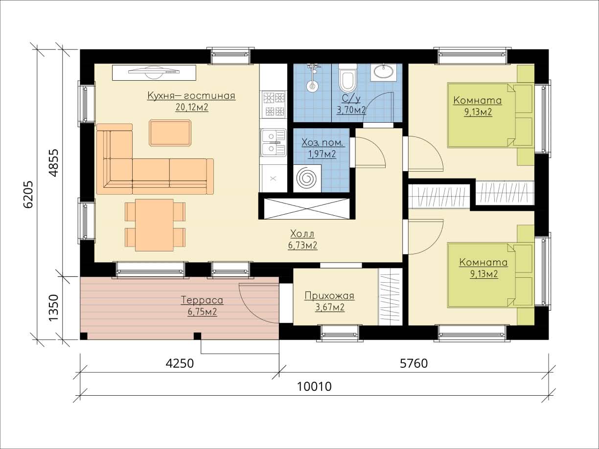| Размер дома | 10х6,2 м |