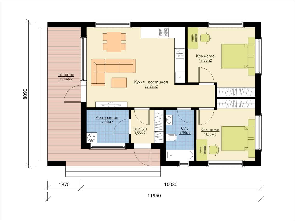 | Размер дома | 12х8 м |