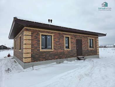 Облицовка кирпичом. Кирпич в оттенке красный флеш в сочетании со слоновой костью. Смотрится эффектно и благородно. Окна в цвете - мореный дуб. Кровля- металлочерепица Grand Line и свесы кровли Grand Line в коричневом оттенке.