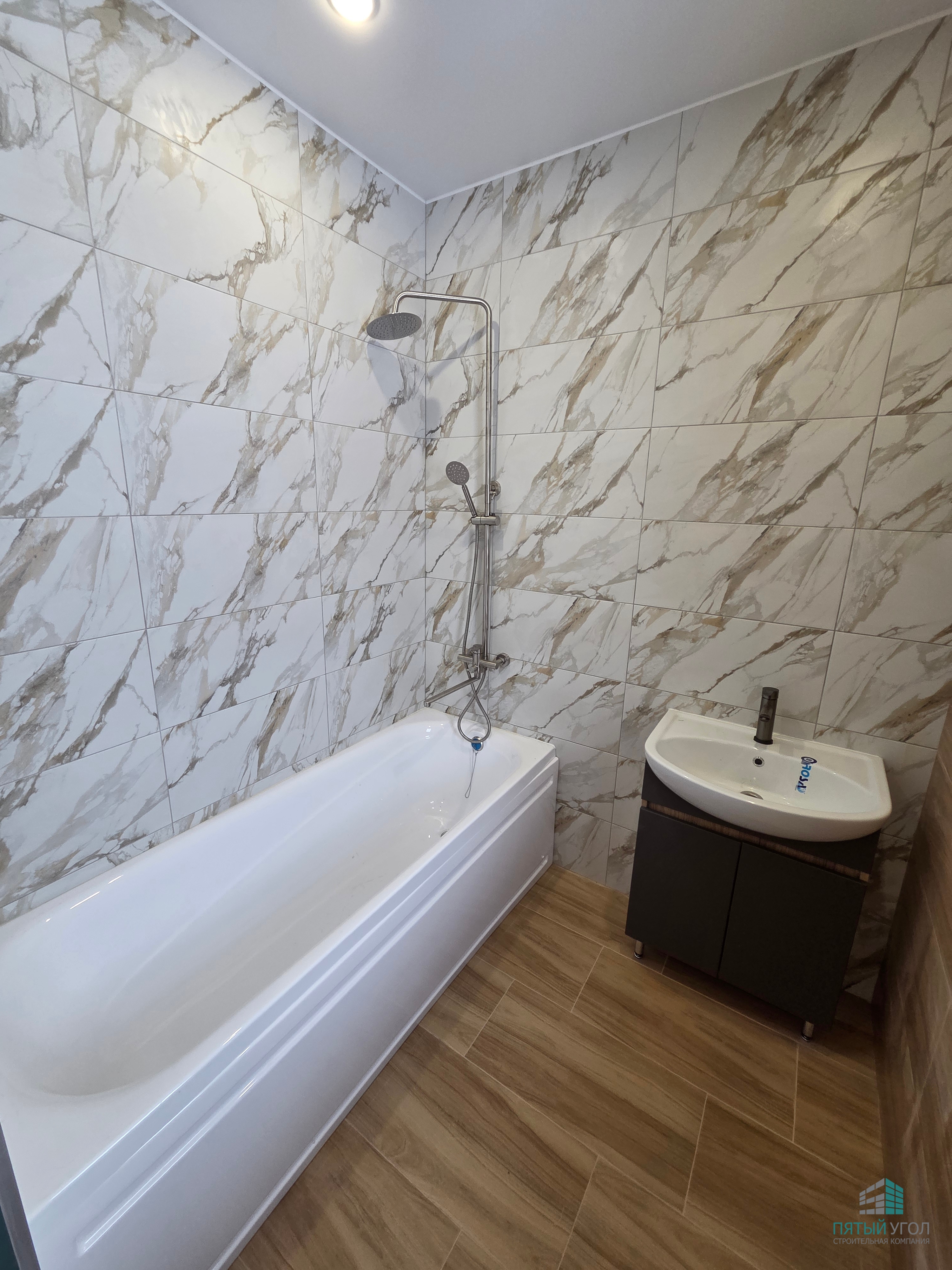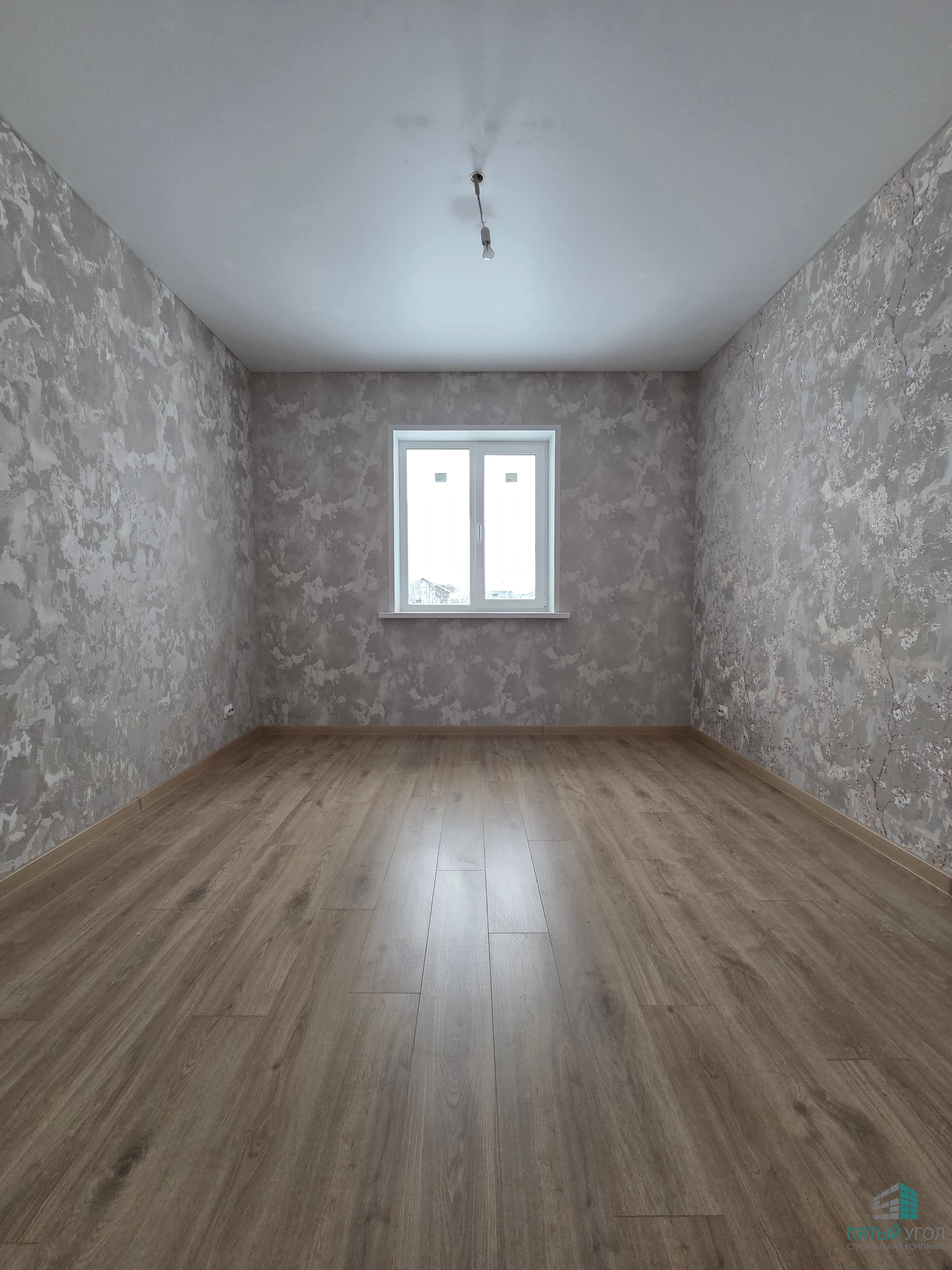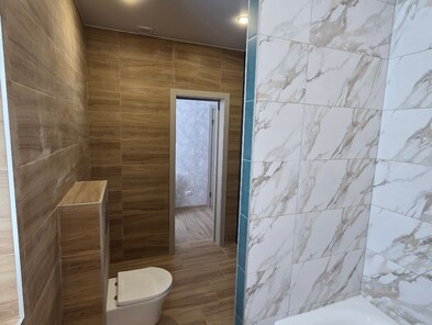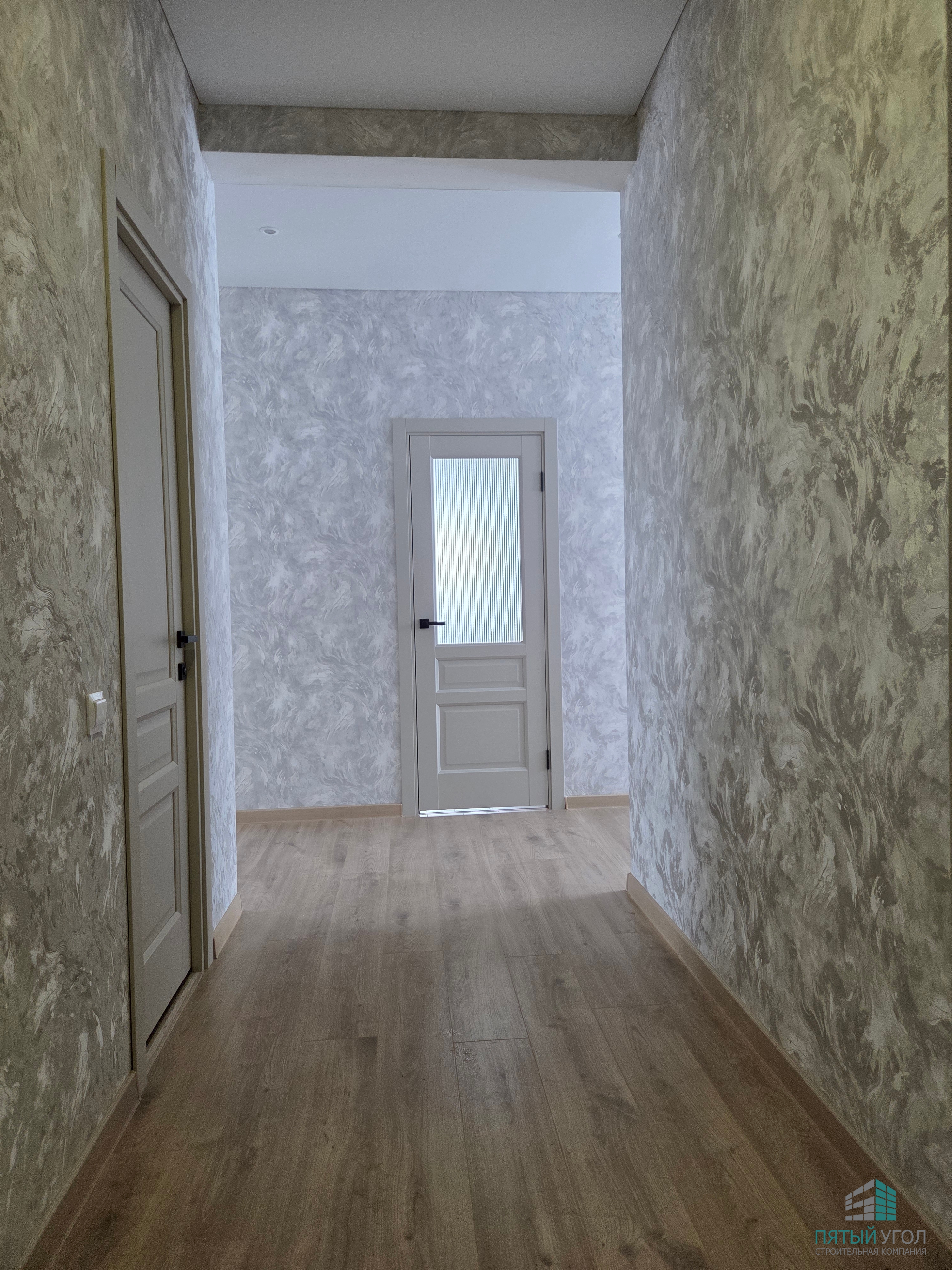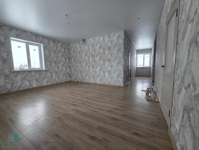 - Отделка будет полностью под ключ. Уже поклеены обои, сделаны натяжные потолки, закуплен ламинат. Вставим межкомнатные двери и сделаем санузлы под ключ. Будет установлена вся необходимая сантехника.